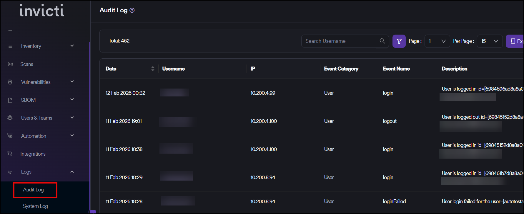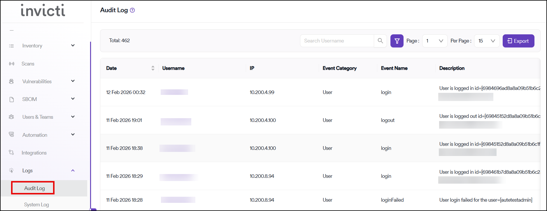 The audit log allows Admin level users to look back at changes that have been made in your Invicti AppSec instance. This is useful when you need to troubleshoot a problem or if you need to keep a record of important events, such as changes to global permissions.