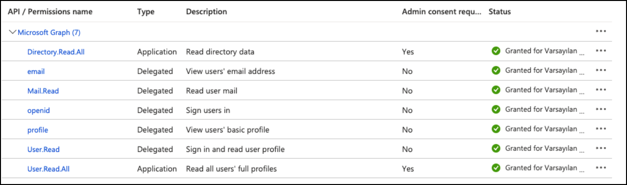 - Click the Grant admin consent for the default directory button, then click Yes on the popup confirmation panel.