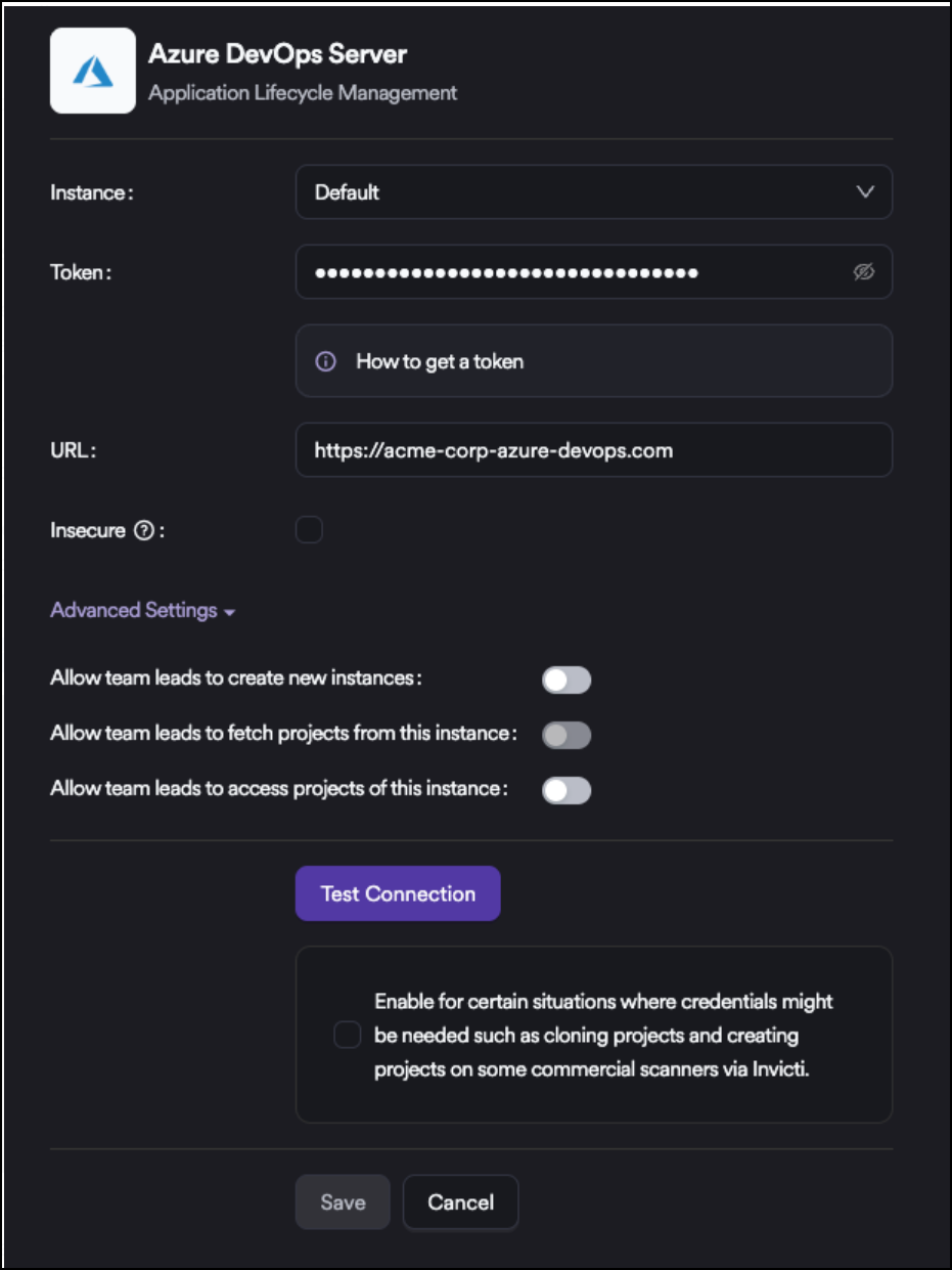Under Advanced Settings, you can configure options for Azure DevOps Server. When enabled, these settings grant permissions to Team Leads as well as Administrators, allowing Team Leads to add their own organizations, onboard projects, and manage access independently.