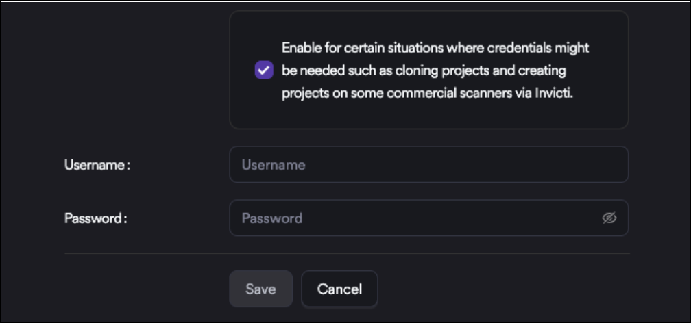 In some scanners, due to their authentication handling, Azure DevOps personal access tokens may not work for repository access. In these cases, provide both a username and token during integration to ensure the clone operation completes successfully. When this scenario applies, both the Username and the Token must be provided during the integration process.