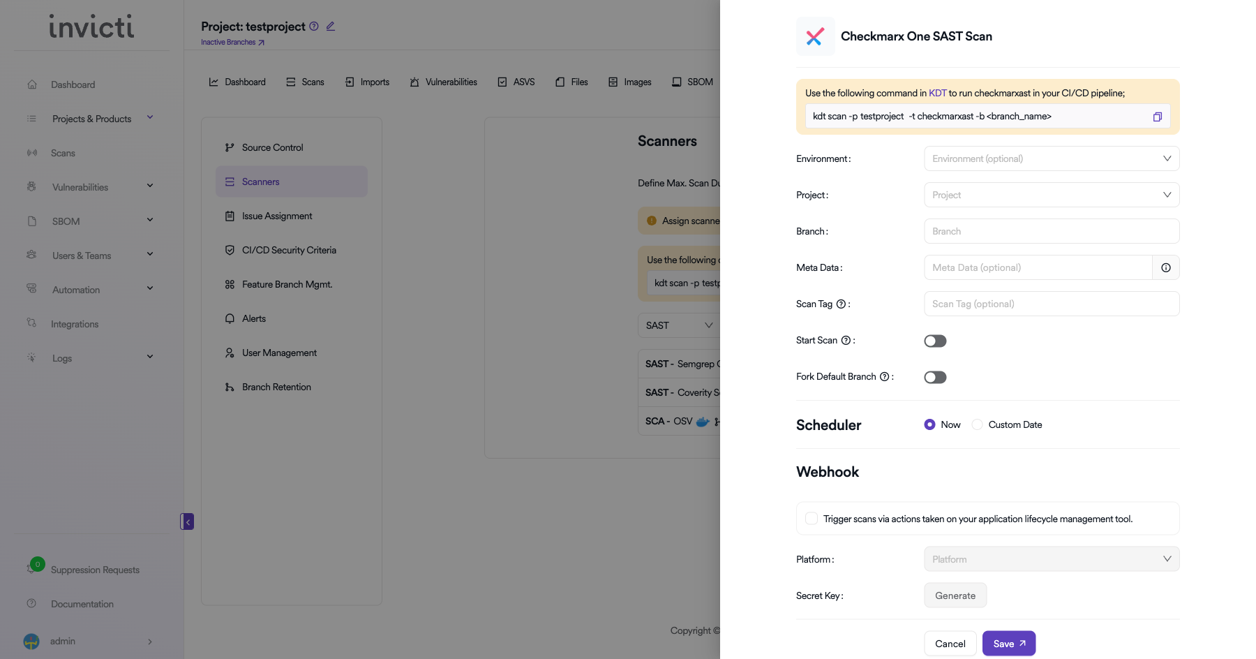 - In the scanner type dropdown, select SAST.