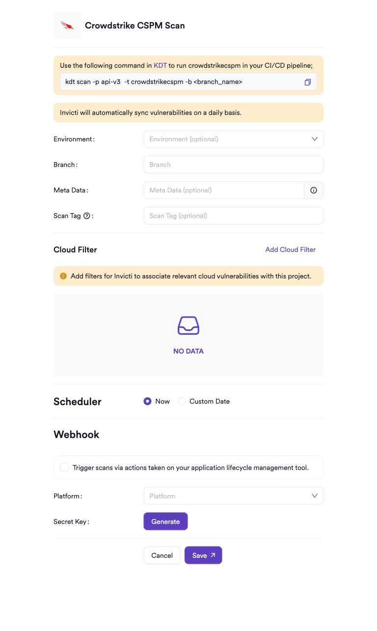 Invicti AppSec automatically syncs CrowdStrike CSPM vulnerabilities on a daily basis — no manual trigger is required after the initial scan is configured.