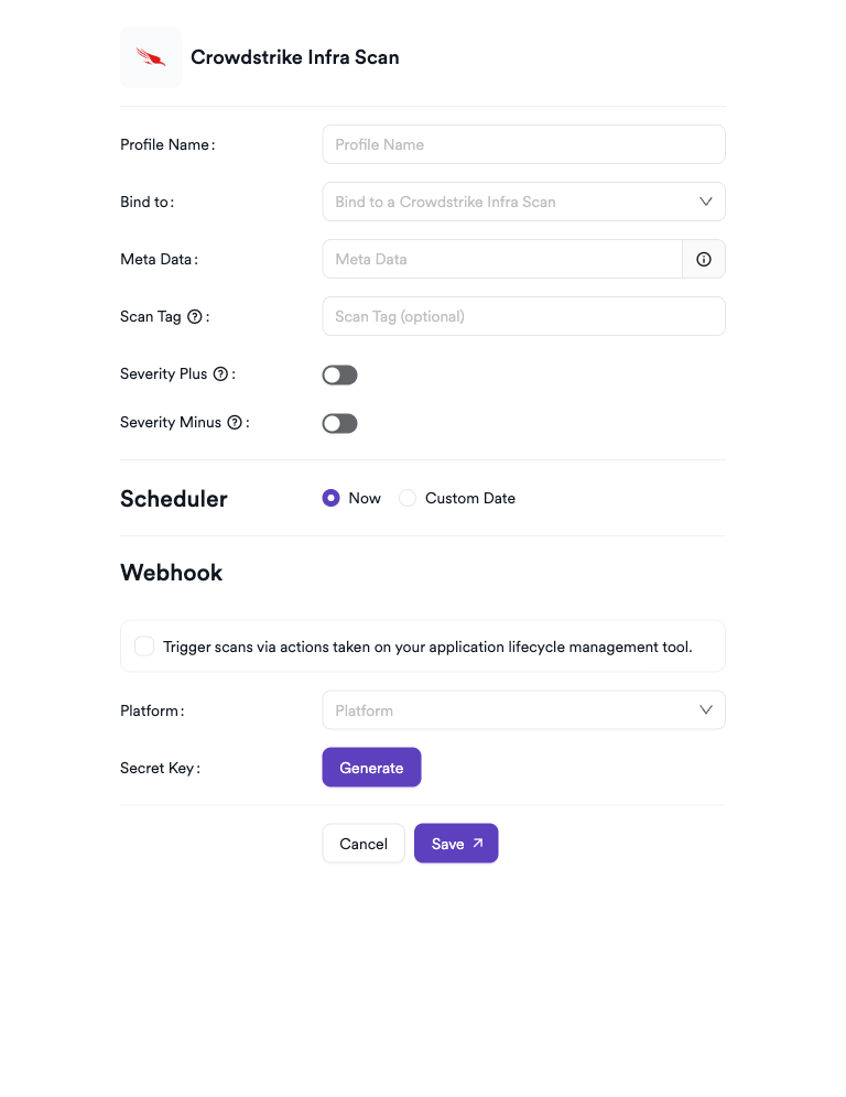 - Choose Crowdstrike Infra from the scanner list.