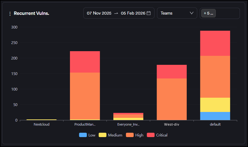 - Recurrent: The filter checks the number of vulnerabilities with the last recurrent date between now and the date selected