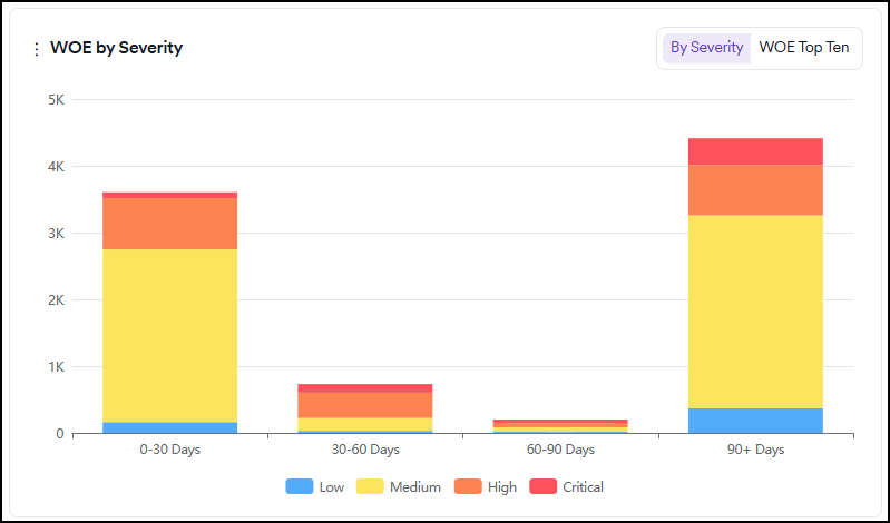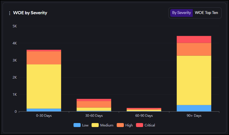 In the tab at the top right corner, you can switch to the WOE Top Ten tab to see ten vulnerabilities with the highest Window of Exposure.