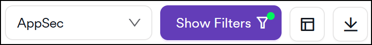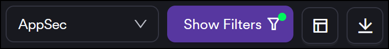 Application Security (AppSec) and Infrastructure metrics display separately. You can switch between these views using the drop-down menu located next to the filter button.
