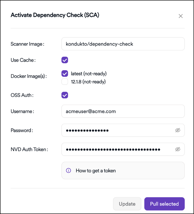 The OSS Auth option is used to provide credentials for an integration user in order to avoid issues such as rate limiting. When enabled, the Username and Password fields become available. Using these credentials helps prevent rate limit–related issues during scans.