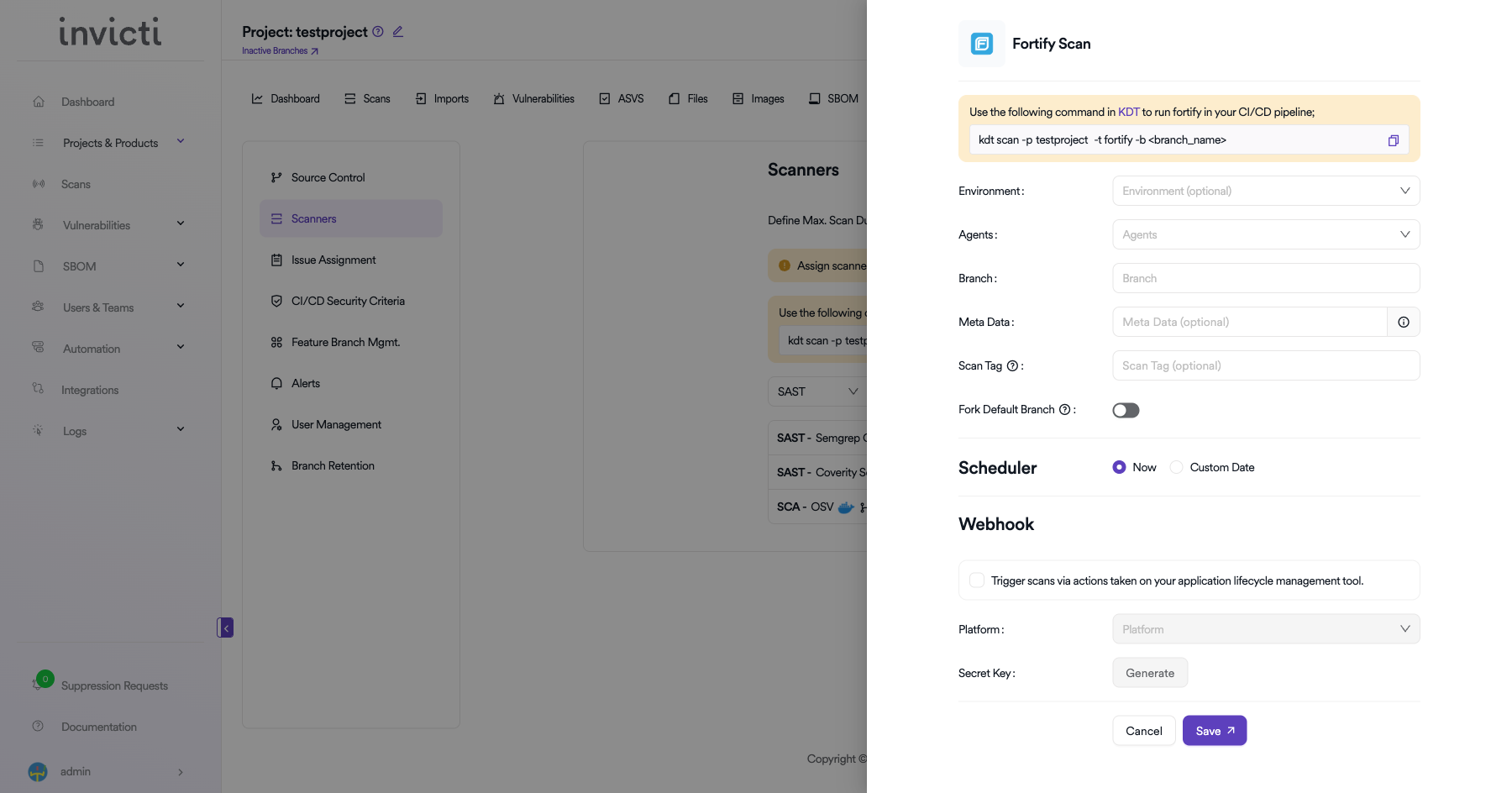 - Import-Based Only: Fortify is an import-based scanner. Invicti AppSec does not trigger Fortify scans directly.