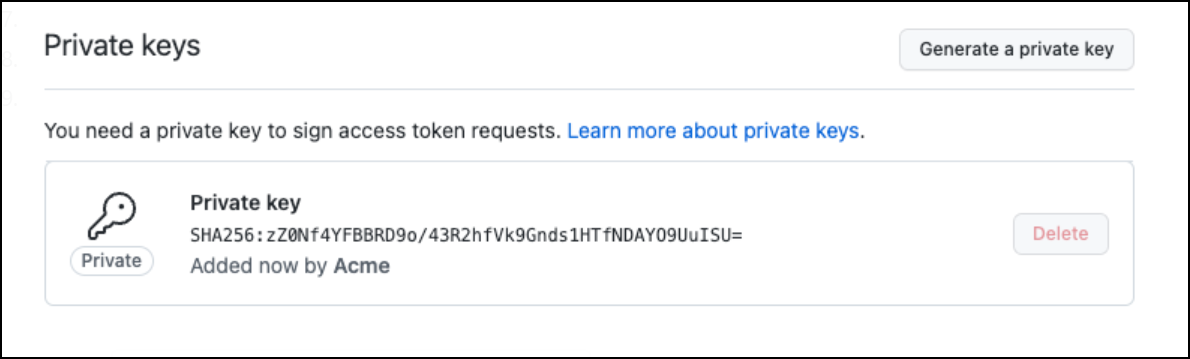 - At the bottom, click Generate a private key to create a new private key. The key will be downloaded automatically.