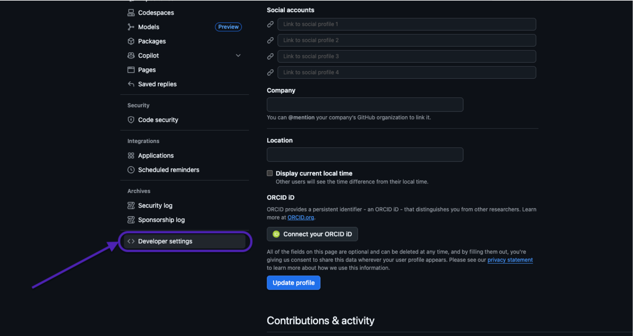 - From the left sidebar, open Developer settings.