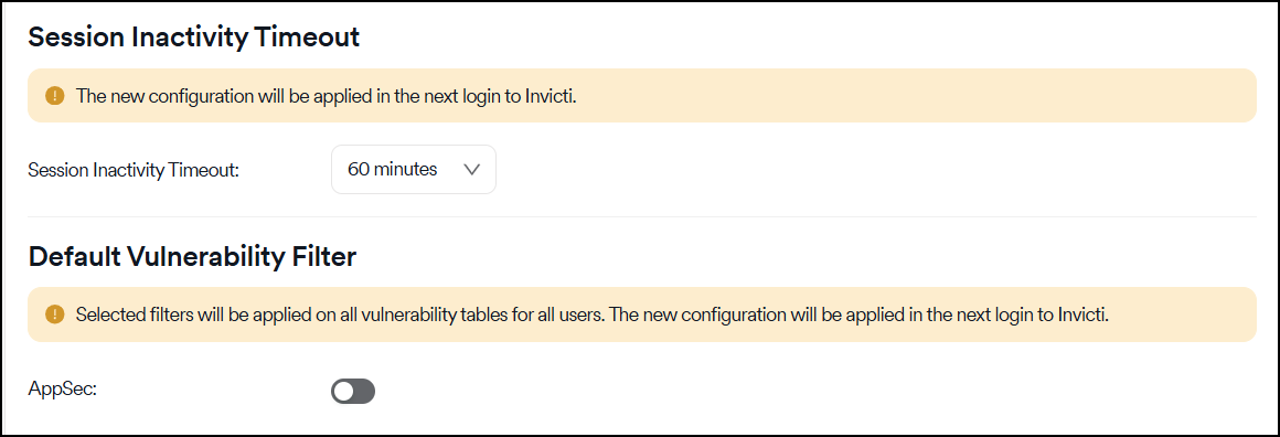 In the global settings, changes can be made to various Invicti AppSec configurations. The working principles of Invicti AppSec are affected by these configurations and, therefore, should be adjusted with care.