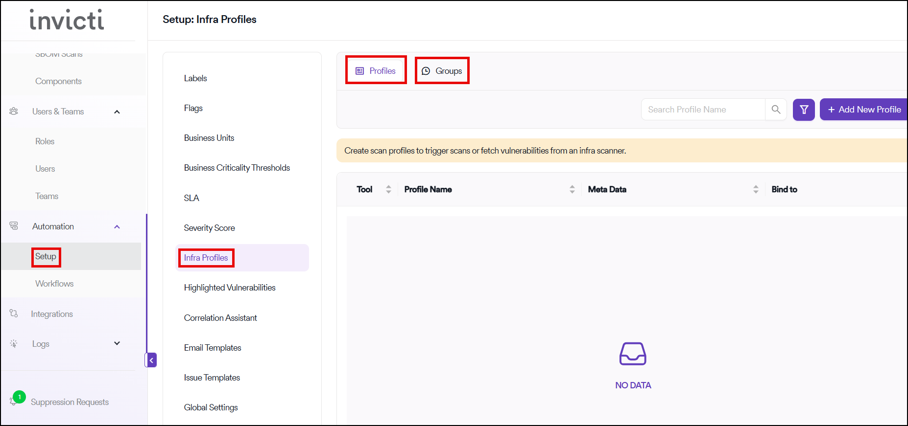 - Set up profiles: Integrate infra scans as Infra Profiles (similar to adding scanners to projects)