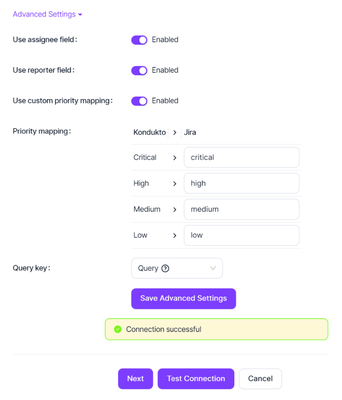 - Custom priority mapping: these settings are used to map default or custom priorities in Jira to set prioritisation