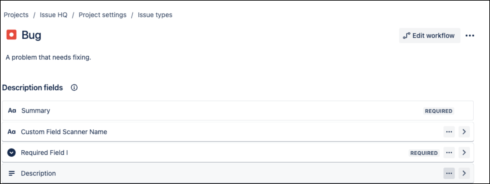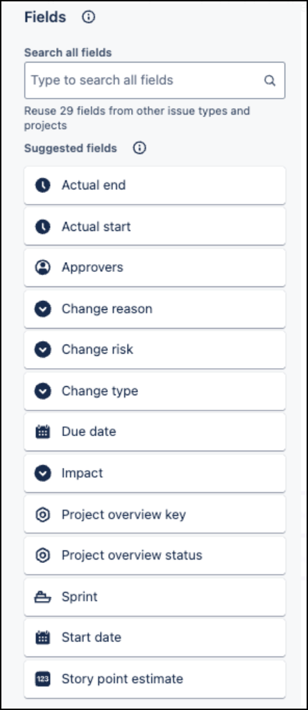 You also have the option to remove an optional field and add another. Simply navigate to Fields and select the ones you wish to display. In this section, if the Custom Field Scanner Name is set to the Scanner value in Invicti AppSec, the scanner information is automatically populated when creating an issue in Jira.