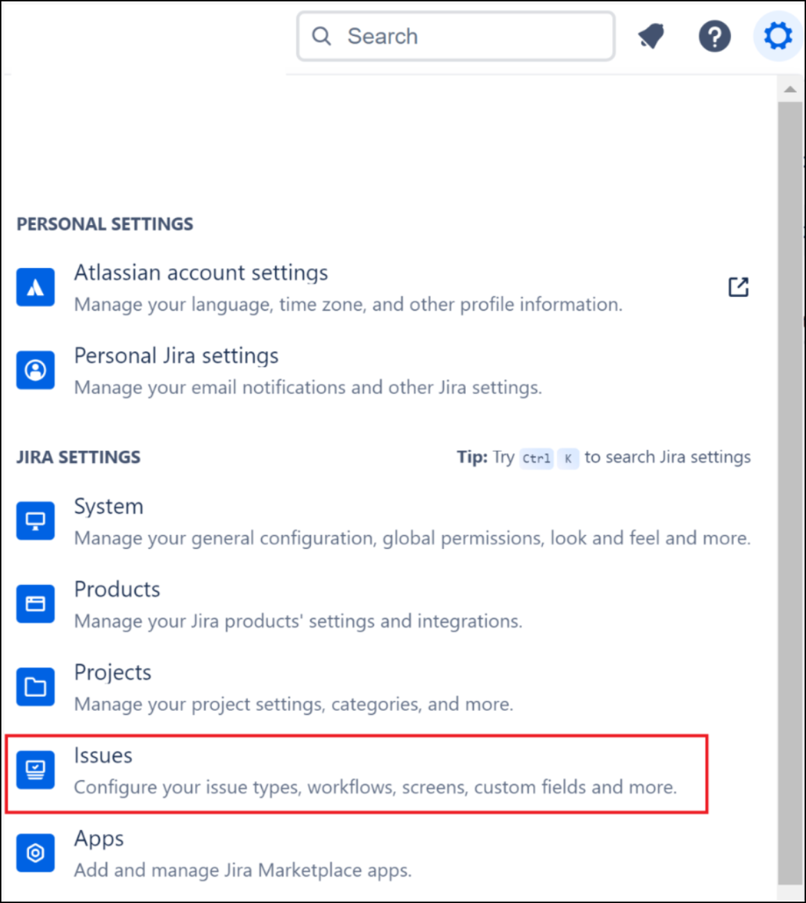 - You can see the list of statuses in Jira by clicking the gear icon in the upper right.