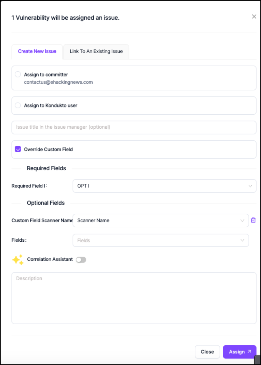 Once Issue Manager is selected and configured, you're now able to select from vulnerabilities scanned inside the project and create or assign an issue in the Invicti AppSec application, reflecting the issue inside Jira issues.