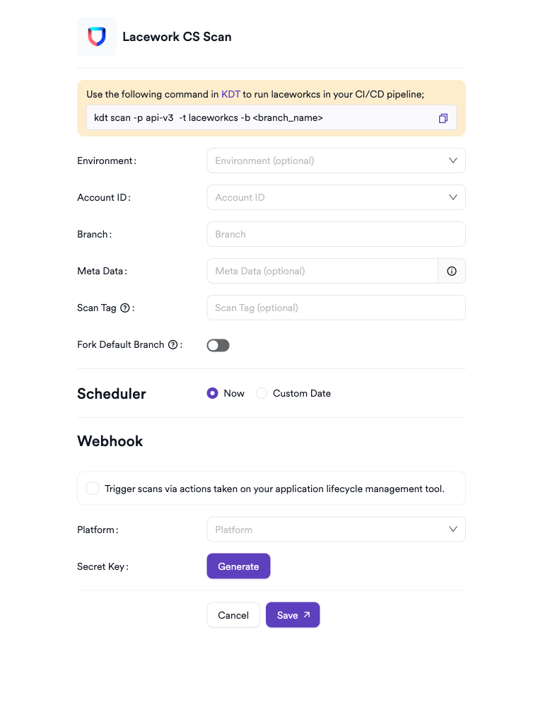 kdt scan -p <project_name> -t laceworkcs -b <branch_name>