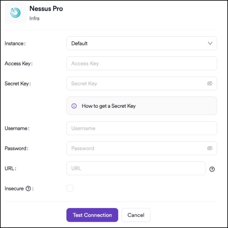To integrate Nessus Pro, it's recommended as a best practice to first create a dedicated Nessus Pro service account. This account is generally recommended to have admin-level permissions. After creating this user, the integration can be completed by following the steps outlined below.