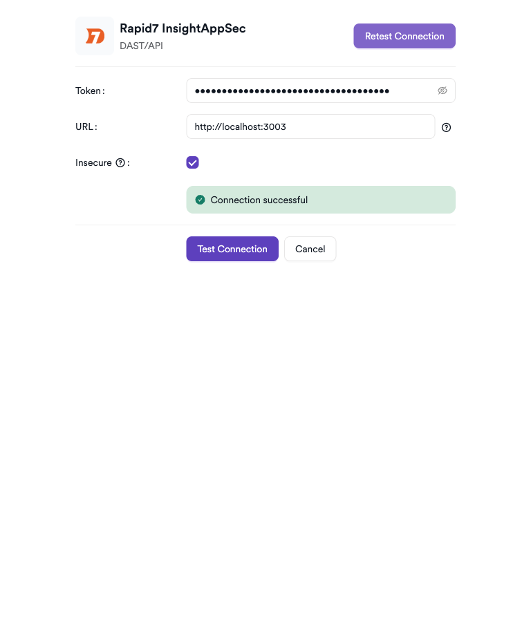 - Token: Paste your Rapid7 InsightAppSec API token.