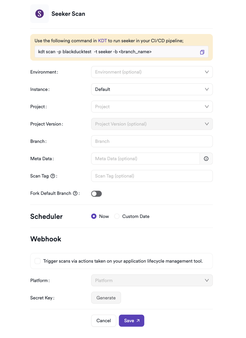 kdt scan -p <project_name> -t seeker -b <branch_name>