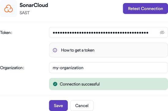 - Organization: Enter your SonarCloud organization key (found in your SonarCloud organization settings).