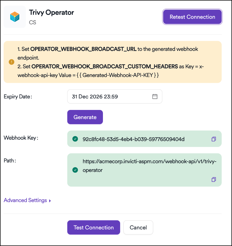 OPERATOR_WEBHOOK_BROADCAST_URL="https://{INVICTI_AppSec_URL}/webhook-api/v1/trivy-operator" \