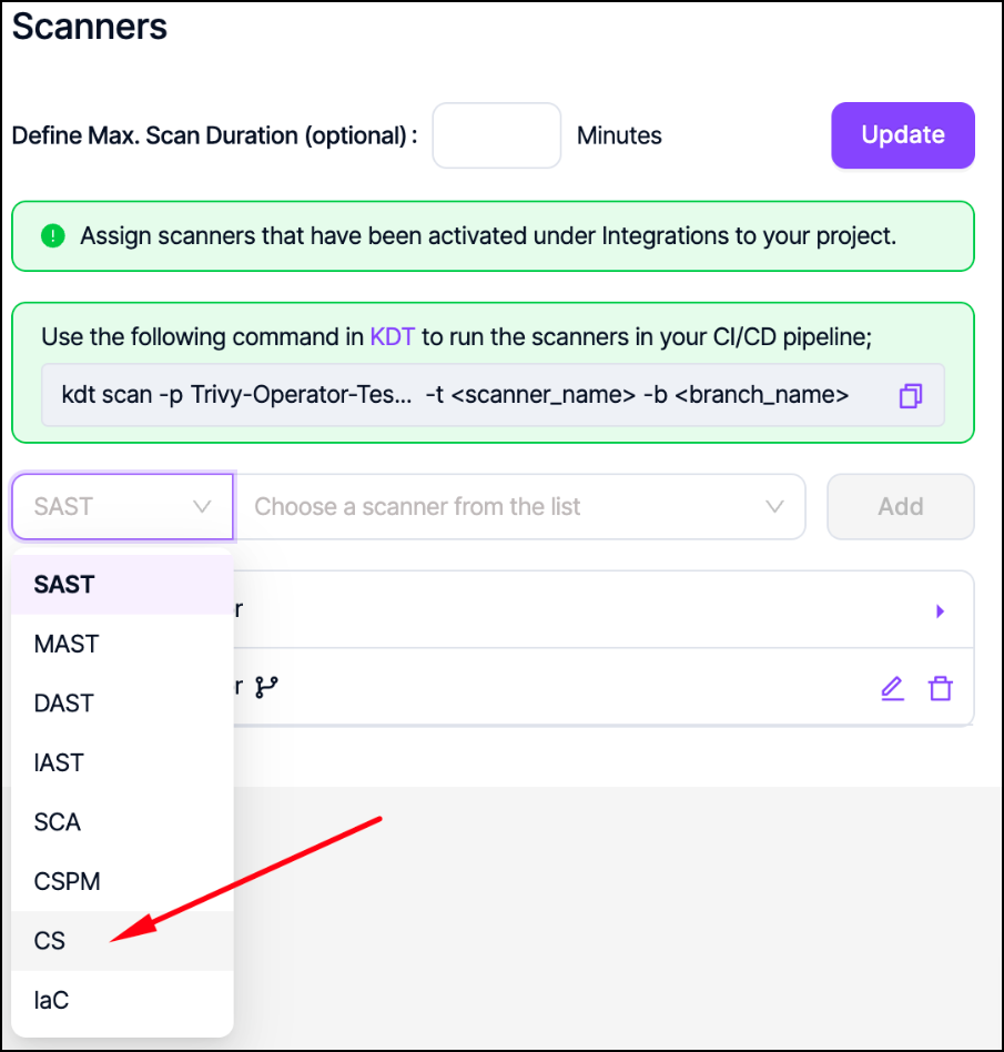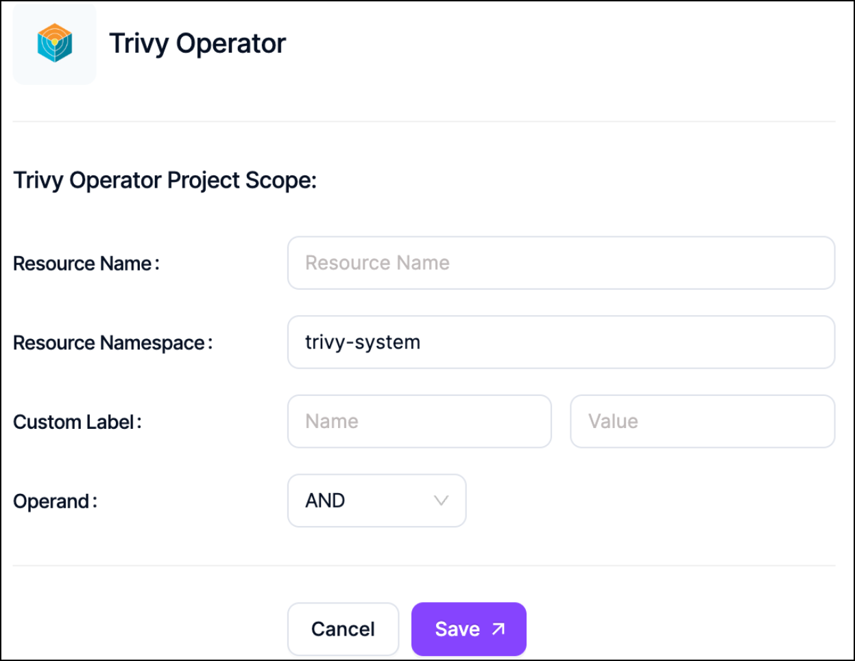 In the Trivy Operator scan settings, the relevant scopes should be added and saved. In this example, we specified the trivy-system namespace as the scope and saved the configuration.