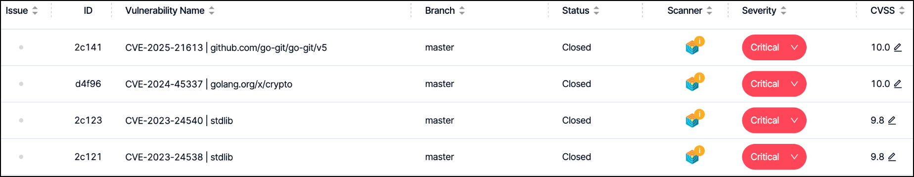 You can see the scan results of your created project displayed under the Vulnerabilities tab.