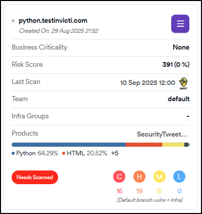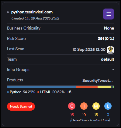 Projects represent individual applications or components within your organization's security portfolio. In Invicti AppSec, products serve as umbrellas for projects, with one product containing multiple related projects.