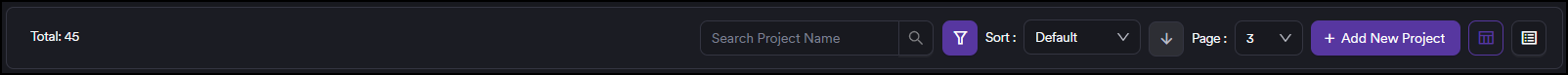 - Gallery view: display projects as cards (default) with page navigation to move between specific pages