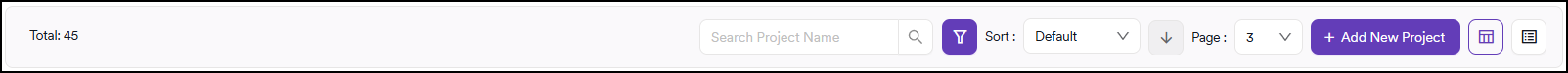 - List view: display projects in a table format with a dropdown to select the number of items displayed per page