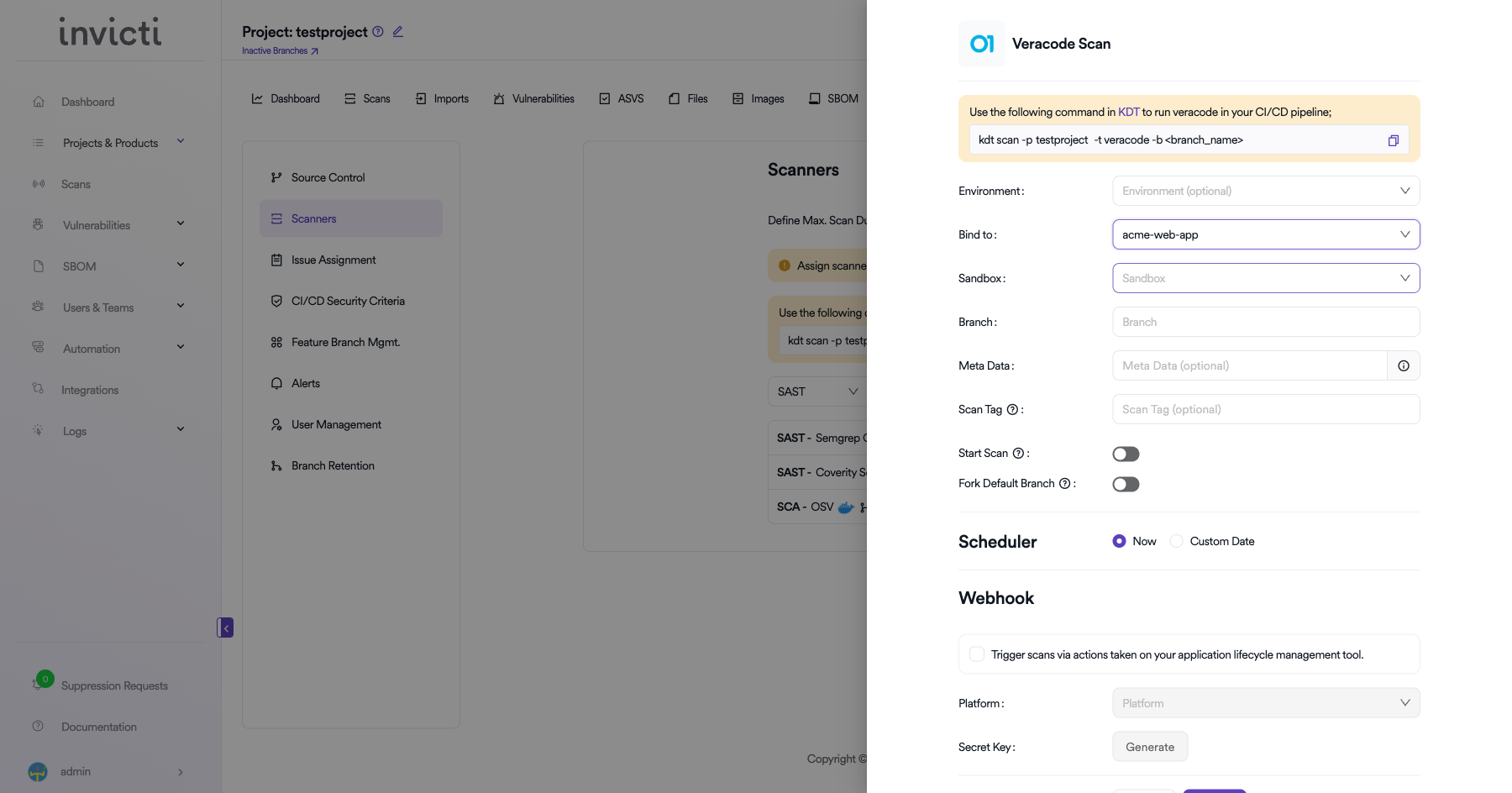 After activating and configuring Veracode, you can create scans from your project's scanner settings.