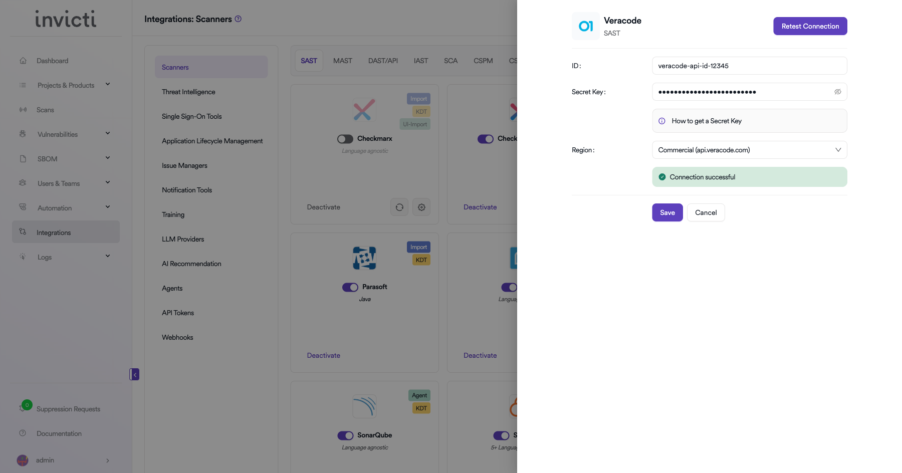- Network/Firewall: Ensure the Invicti AppSec instance can reach the Veracode API endpoints (