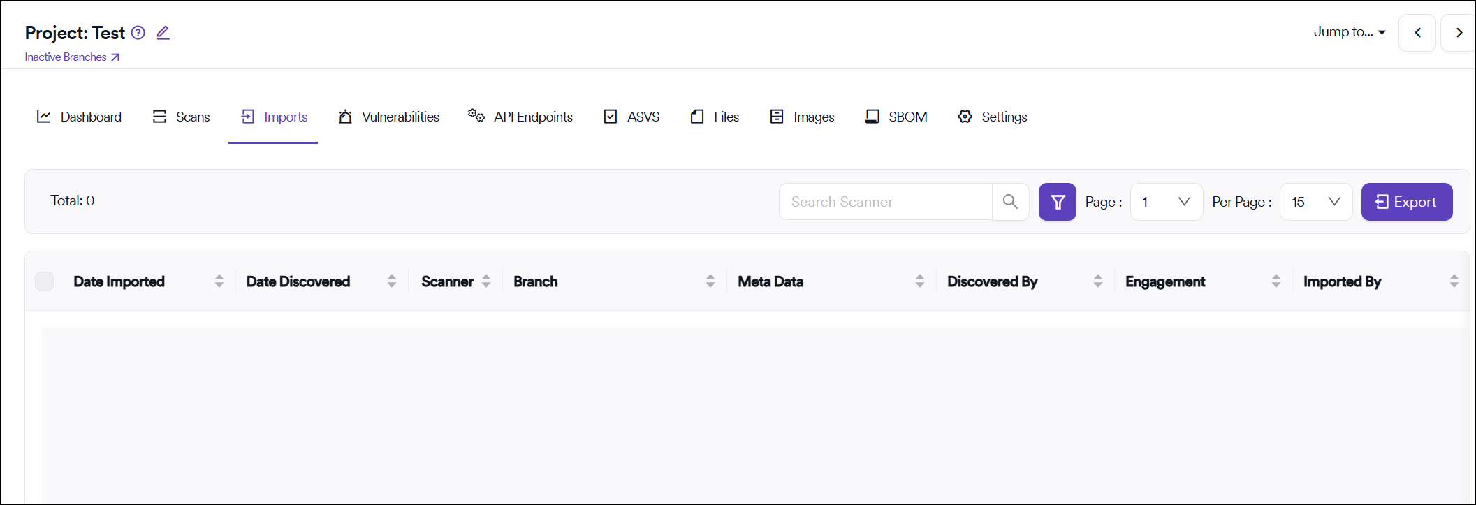 The number of vulnerabilities corresponding to each import reflects the original number of vulnerabilities imported. Subsequent changes made to the vulnerability in Invicti AppSec, such as changing the severity, are not reflected in this view.